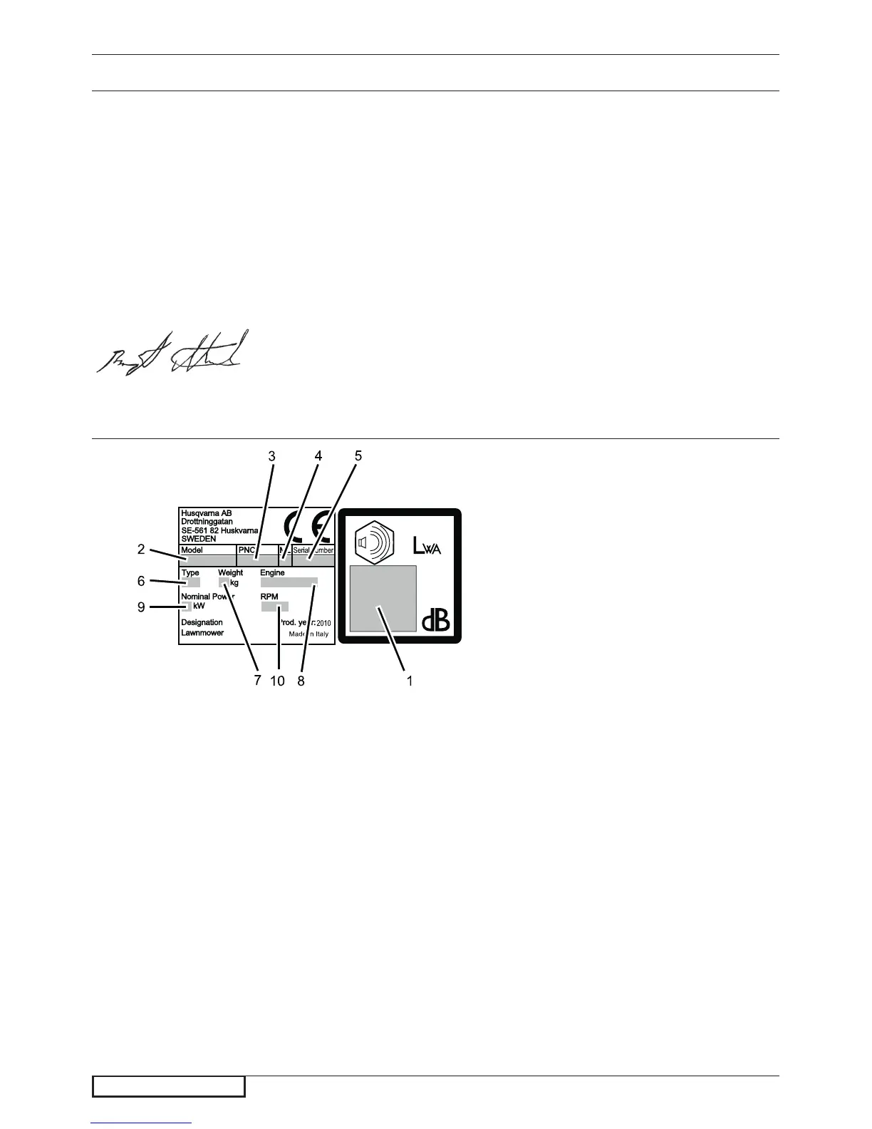 (Pooblaščeni predstavnik Husqvarna AB in Odgovorna oseba za tehnično dokumentacijo.)
