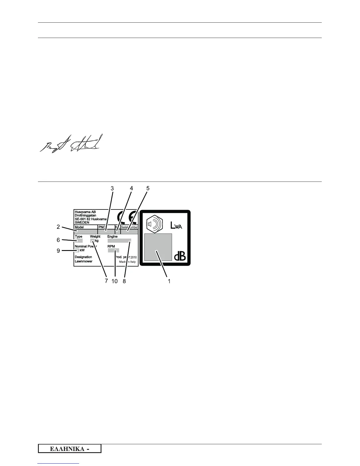 (Εξουσιοδοτημένος εκπρόσωπος της Husqvarna AB και Υπεύθυνος για την τεχνική τεκμηρίωση.)