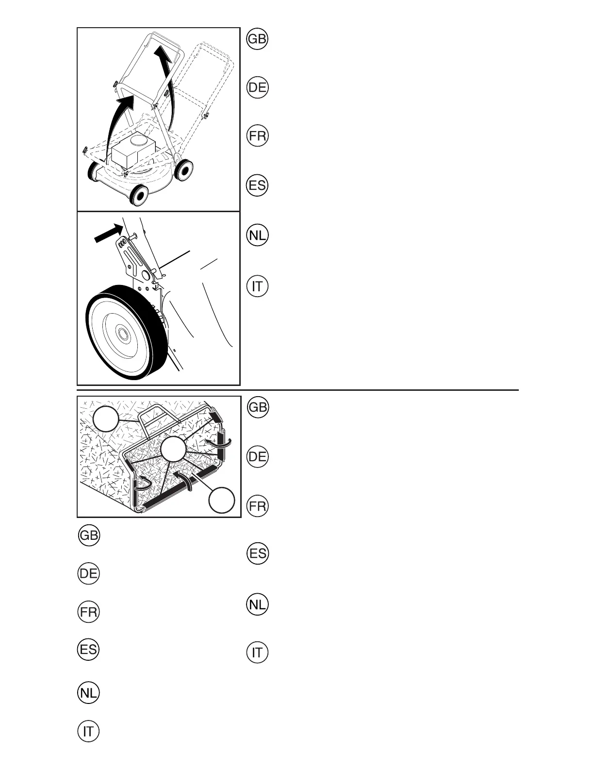 • Put grass catcher frame into grass bag with stiff part of bag
