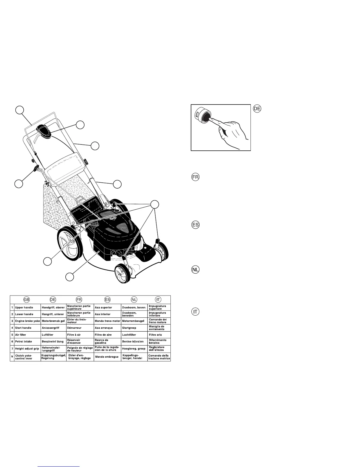 Portare il tosaerba su fondo piano (non su ghiaia, sassi o simili). Riempire il serbatoio con benzina pura.