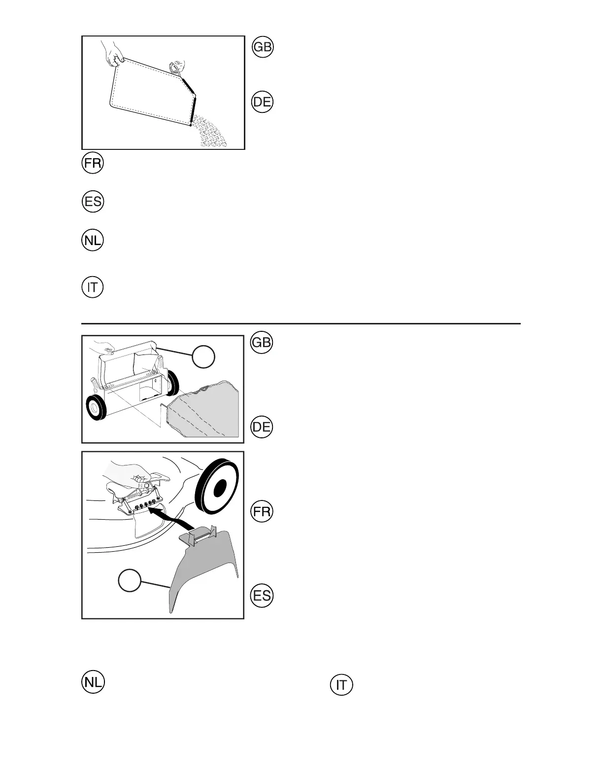• Til het achterluik op en verwijder met behulp van het handvat de grasvergaarbak.