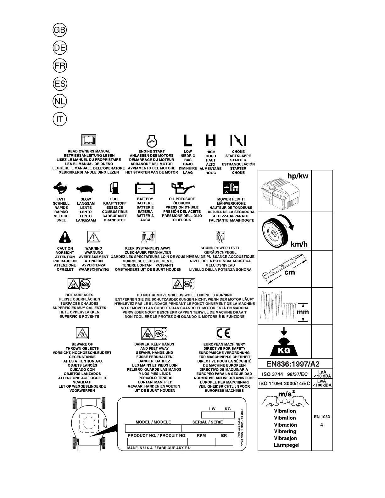 Diese Symbole fi nden Sie auf Ihrer Maschine oder in Unterlagen, die mit dem Produkt ausgehändigt wurden.
