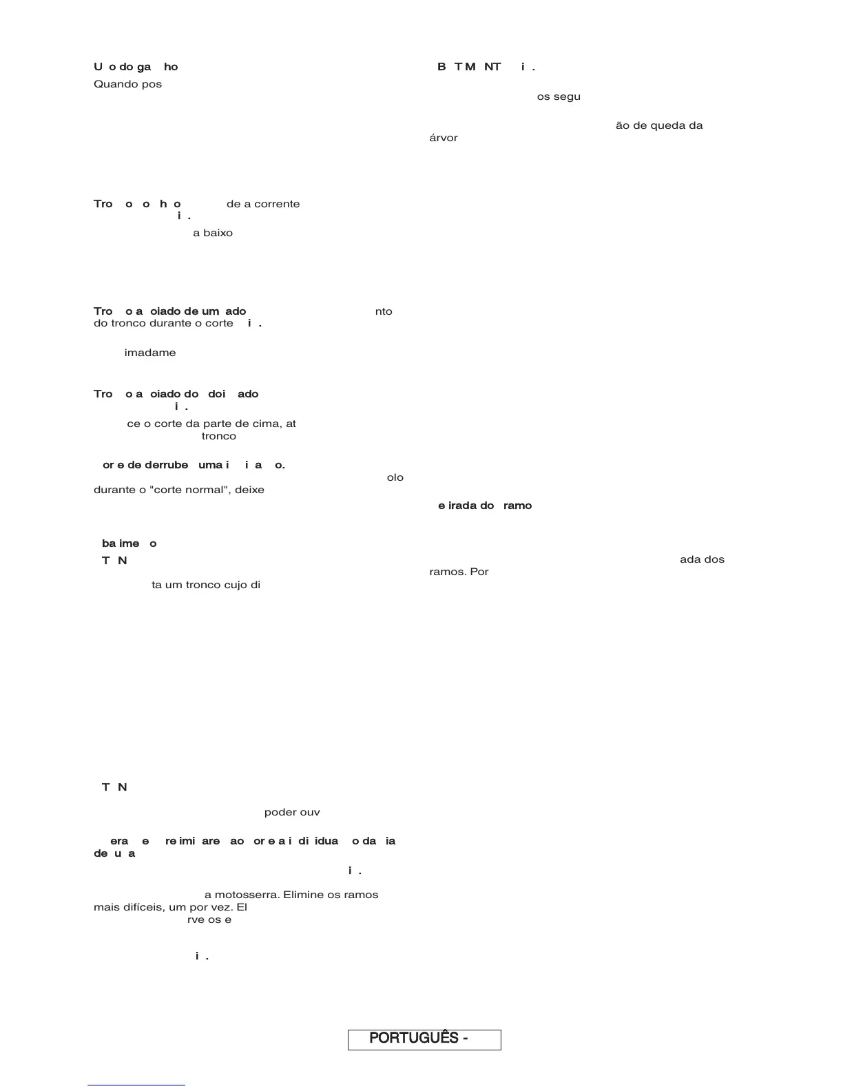 entre o seu corpo e a motosserra. Elimine os ramos