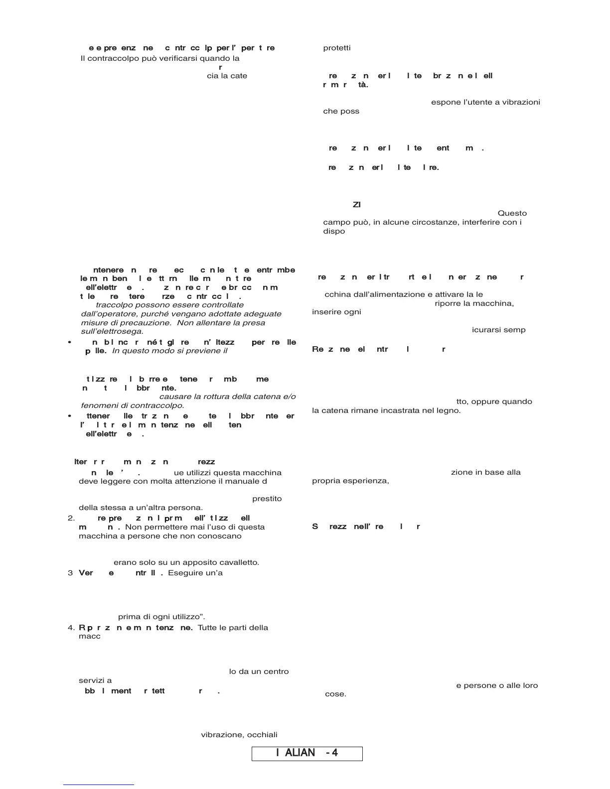 di controllo dell’elettrosega, con conseguenti infortuni
