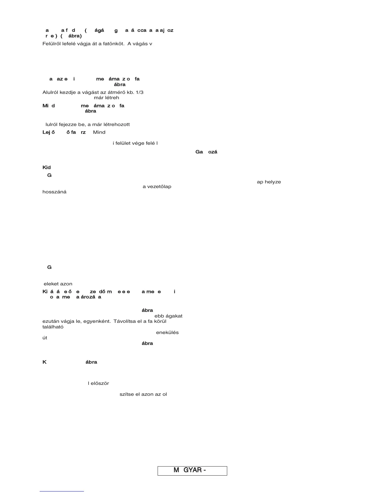 fatönk maga és a gép között legyen, a nehezebb ágakat