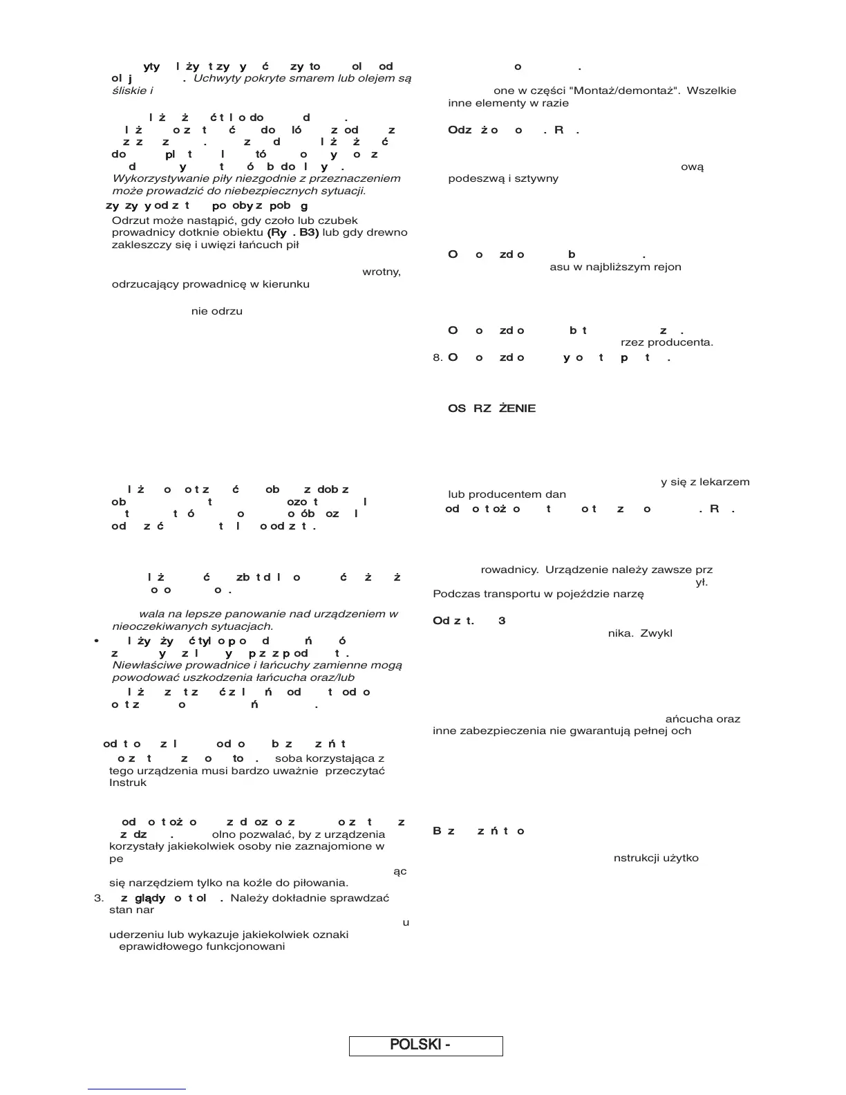 powodować uszkodzenia łańcucha oraz/lub odrzut.