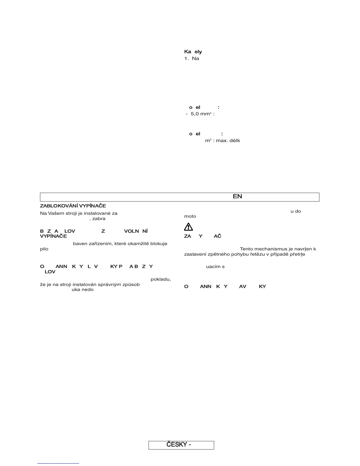 zablokován). Brzdu řetězu lze aktivovat zatlačením vpřed