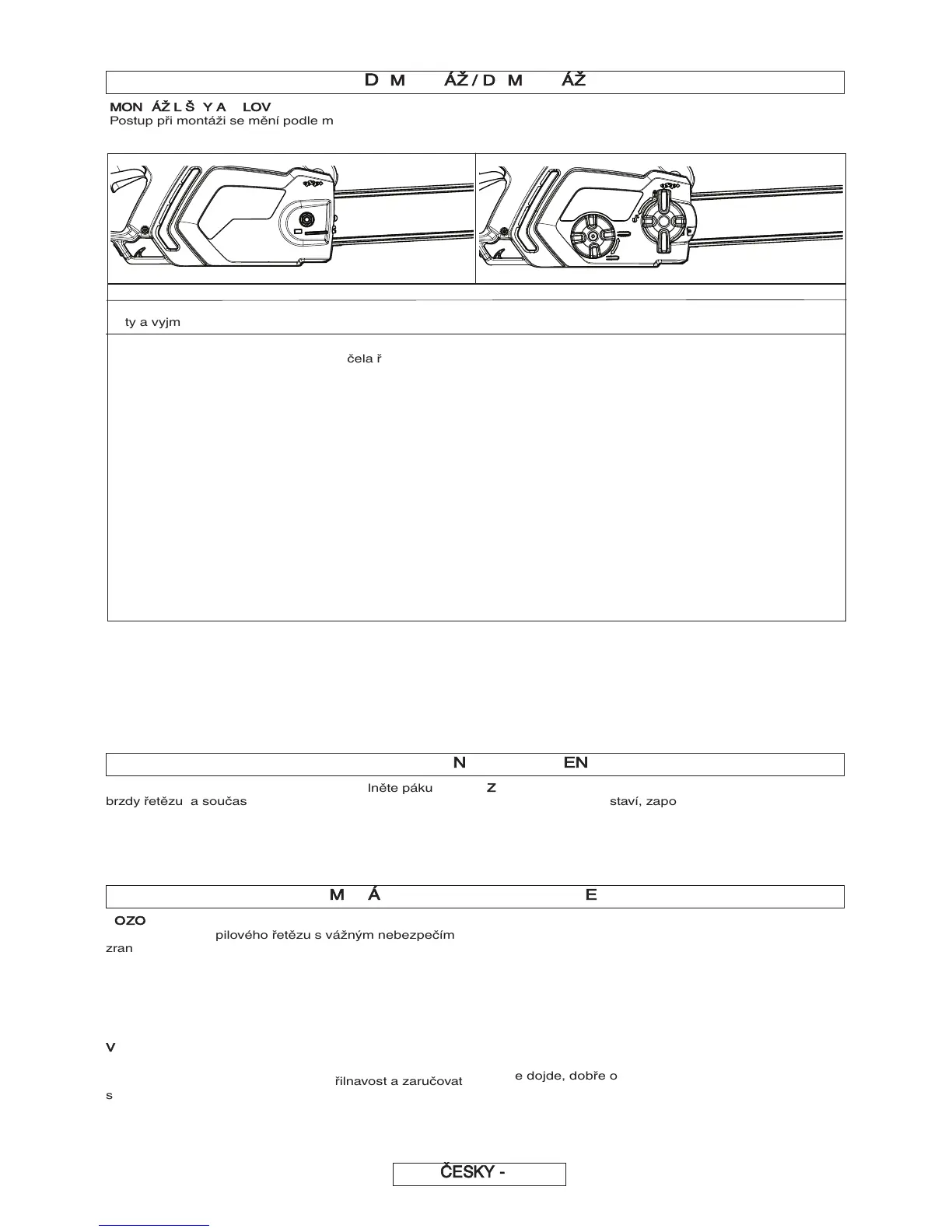 vyčkejte, až se ochladí. Pokud musíte seřídit napětí pilového řetězu, vždy nejdříve uvolněte upevňovací