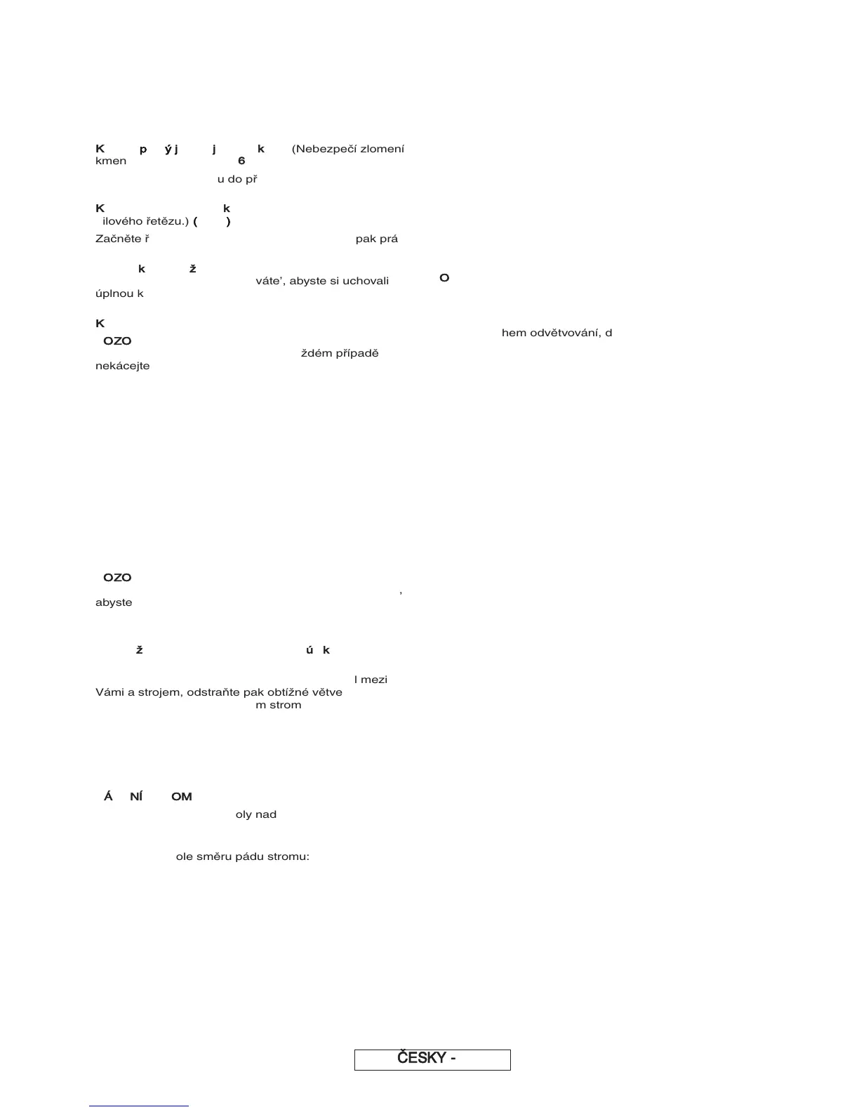 schopen kontrolovat pád stromu (velmi nebezpečná