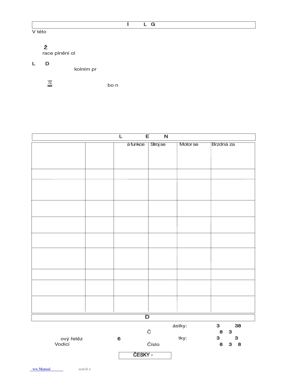 Nespouští Špatná funkce Stroj se Motor se Brzdná zařízení
