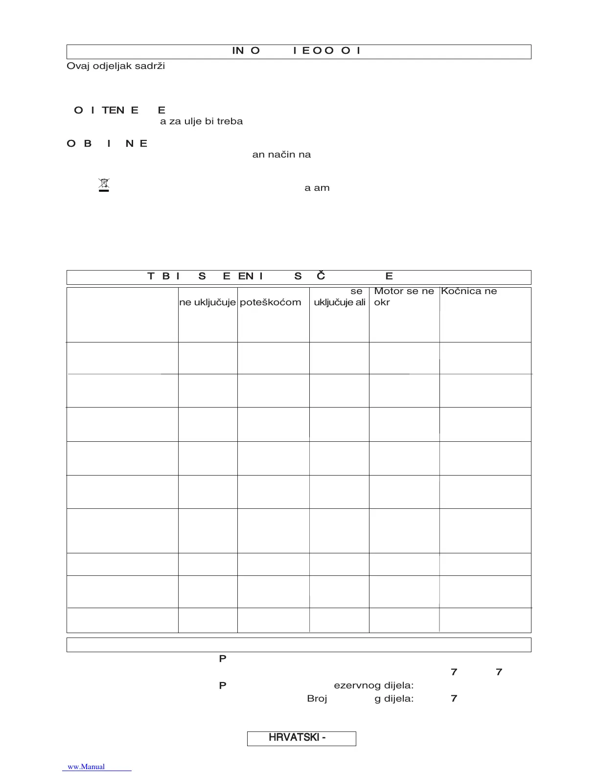 Motor se Motor radi s Uređaj se Motor se ne Kočnica ne