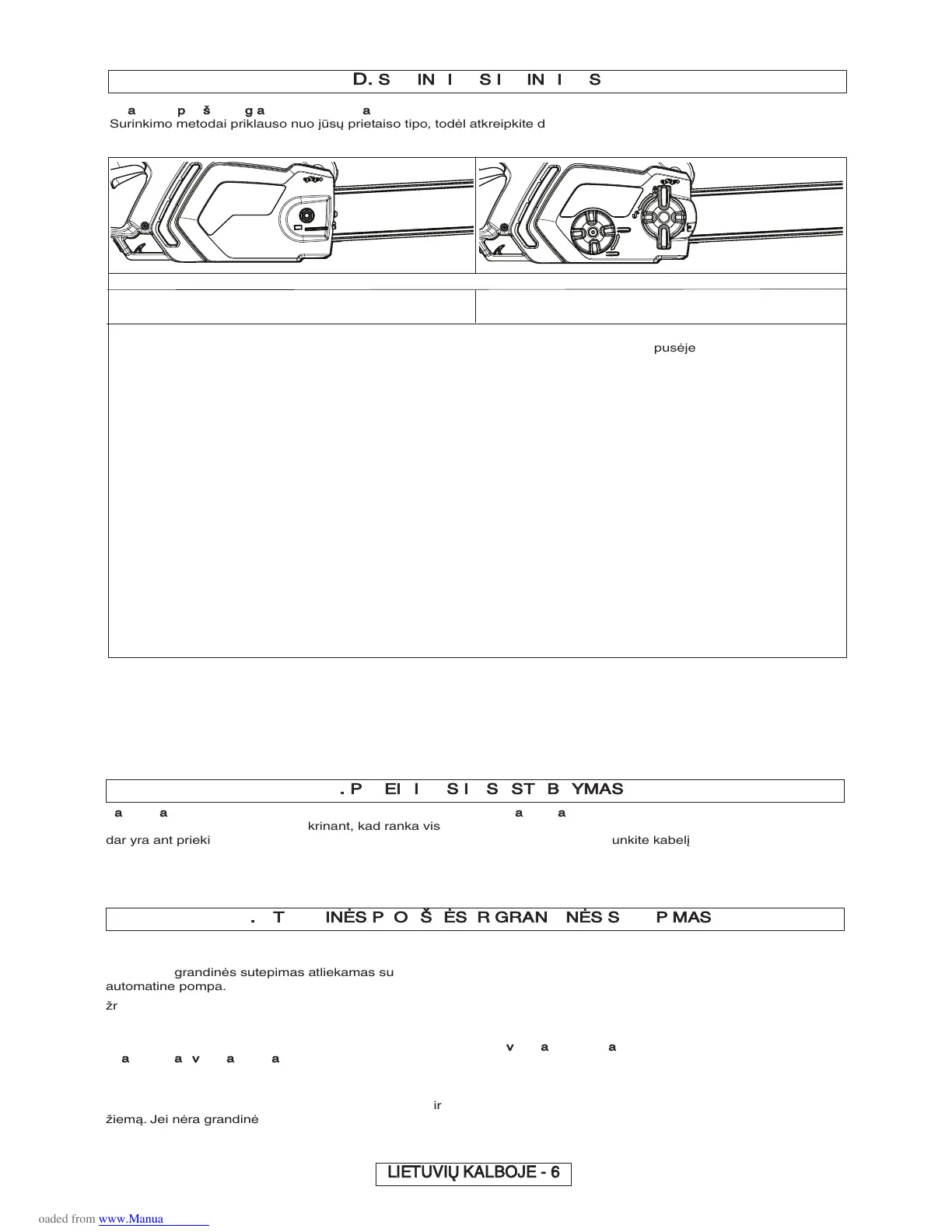 pirmojo surinkimo; grandinėsįtempimą reikėtų tikrinti po 5 minucţių pjovimo). Negalima grandinės tempti vos tik