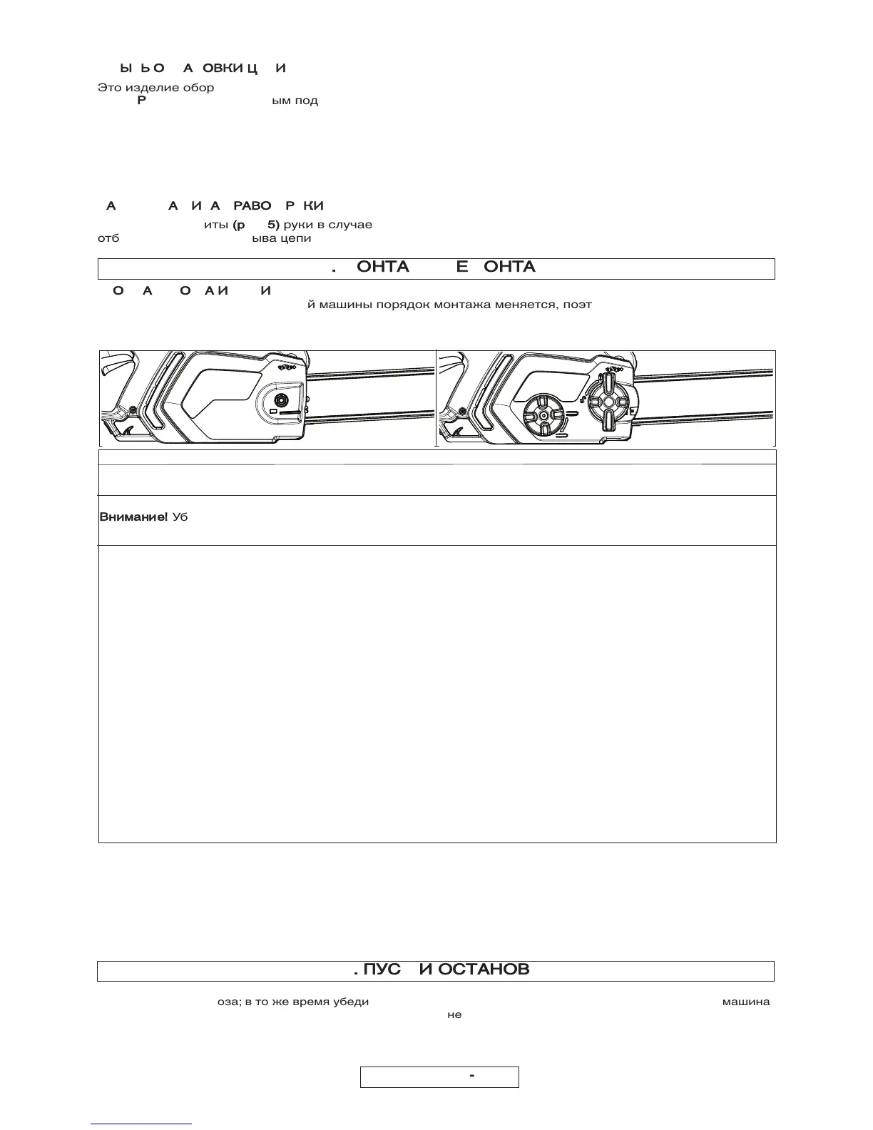 1. Проверить, что тормоз цепи не включен, в противном случае, отключить его.