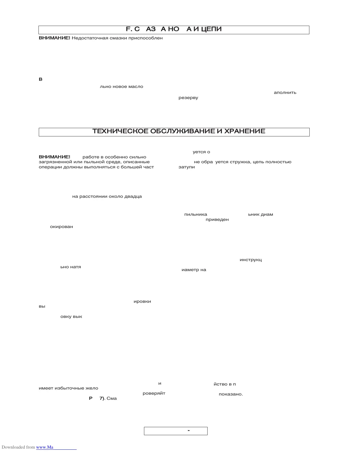 F. СМАЗКА НОЖА И ЦЕПИ