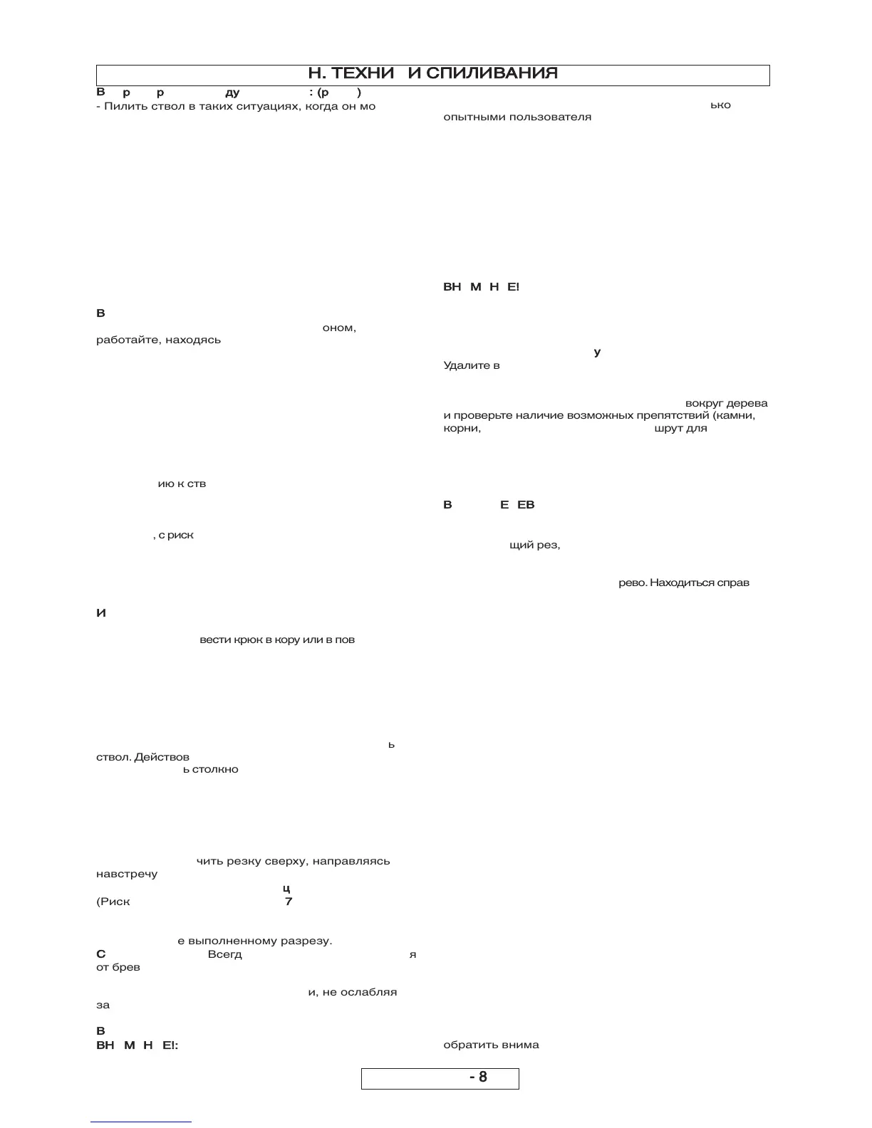 распиливания ствола на части. (Избегать ситуации,