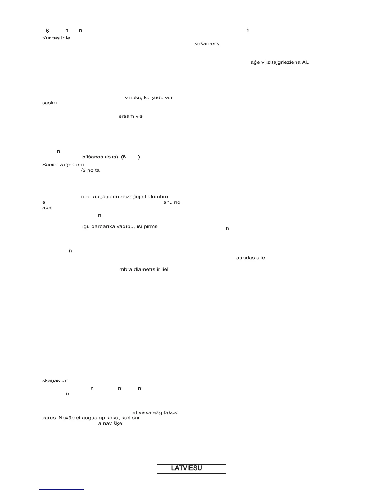 Esiet īpaši uzmanīgi zāģēšanas beigās, lai nepieļautu