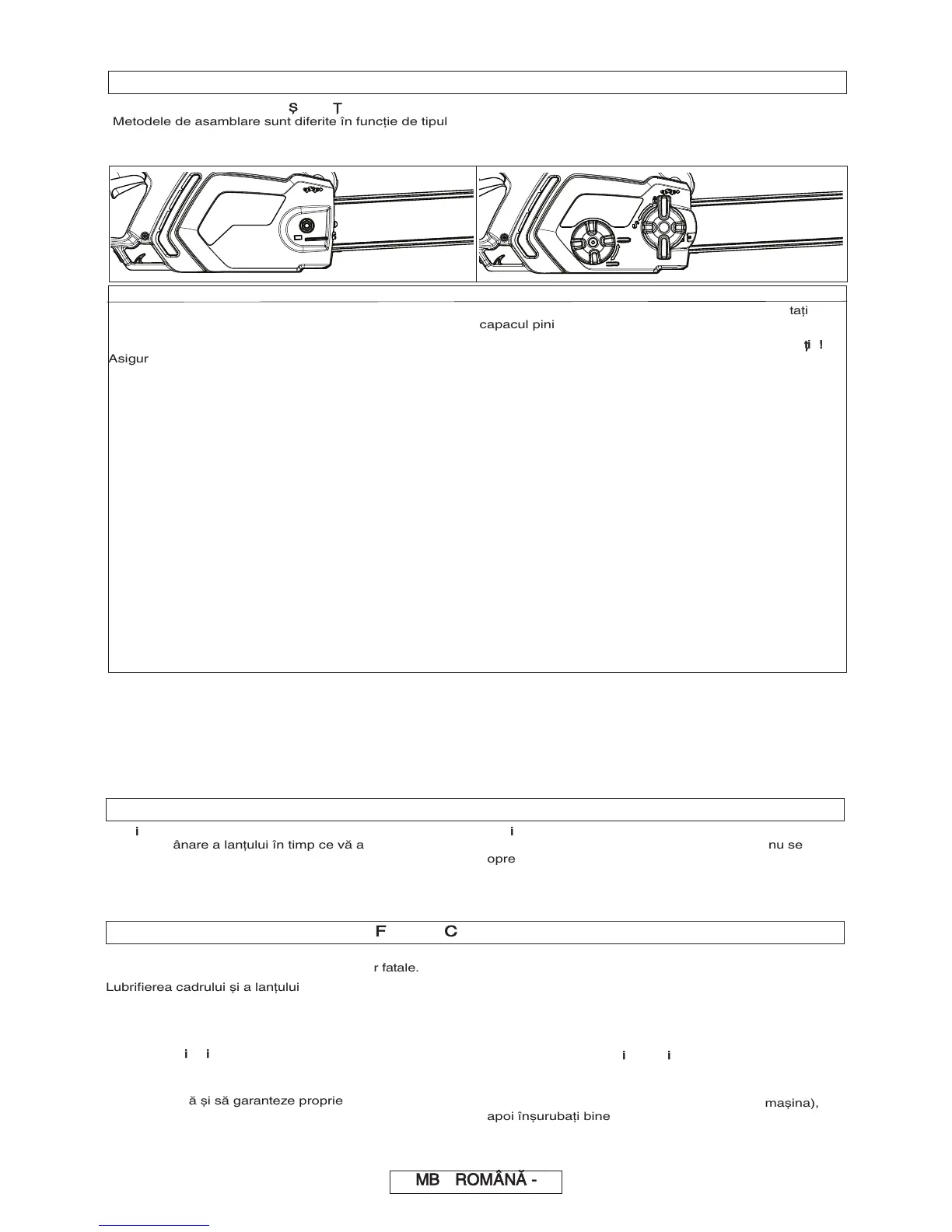 1. Verificaţi ca frâna lanţului să nu fie activată. Dacă este activată, dezactivaţi-o.