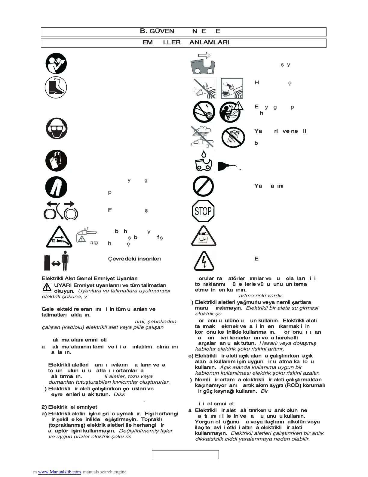 Elektrikli Alet Genel Emniyet Uyarıları