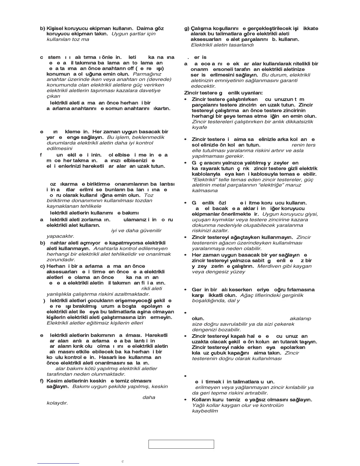 • Zincir testere çalıştırılırken vücudunuzun tüm