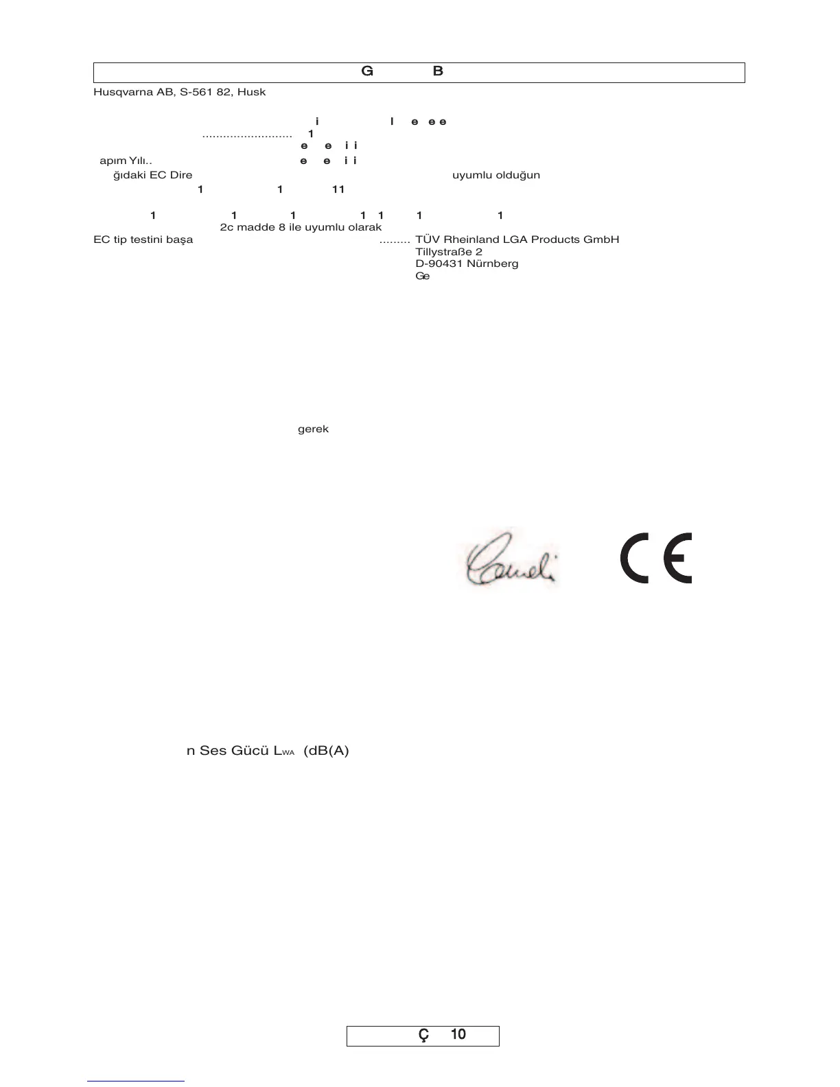 2000/14/EC: Ölçülen Güvenilir Güç L