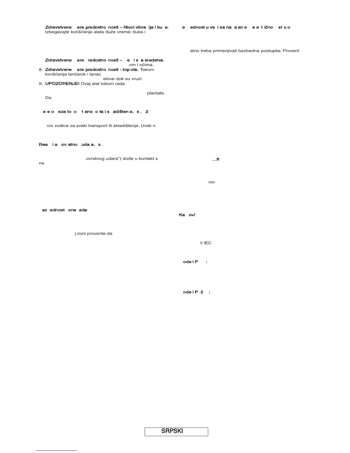EN60745. Nikako nemojte uzemljiti nijedan deo