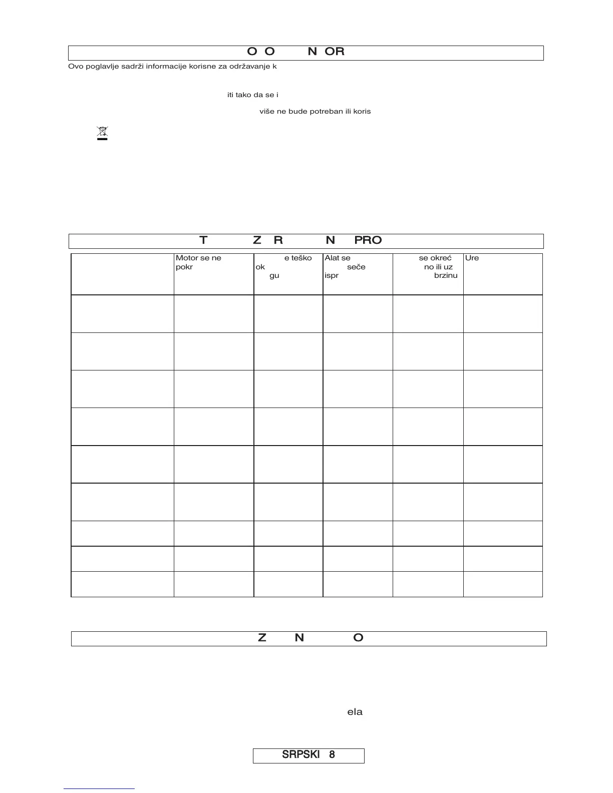 Nemojte odlagati alat na pogrešan način kada vam više ne bude potreban ili koristan. Odnesite ga u ovlašćeni centar za
