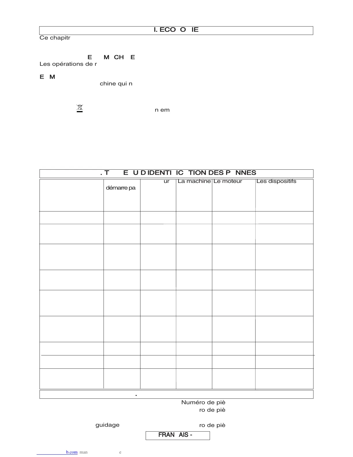 J. TABLEAU D'IDENTIFICATION DES PANNES