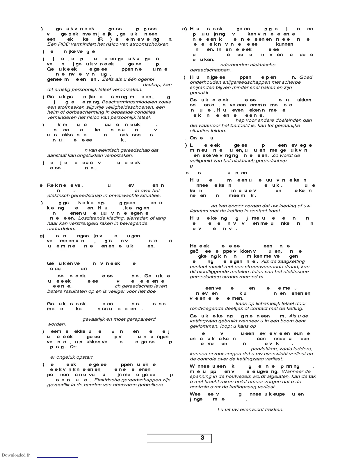 wanneer de kettingzaag wordt gebruikt. Voordat u de