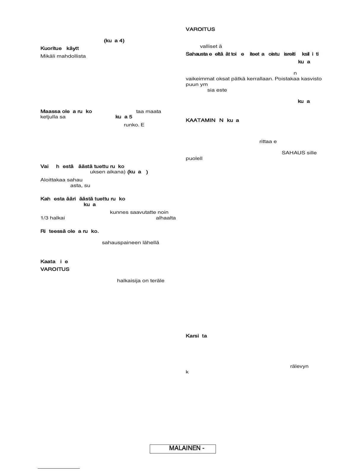käytätte puun kaatuessa); huomoikaa kuva
