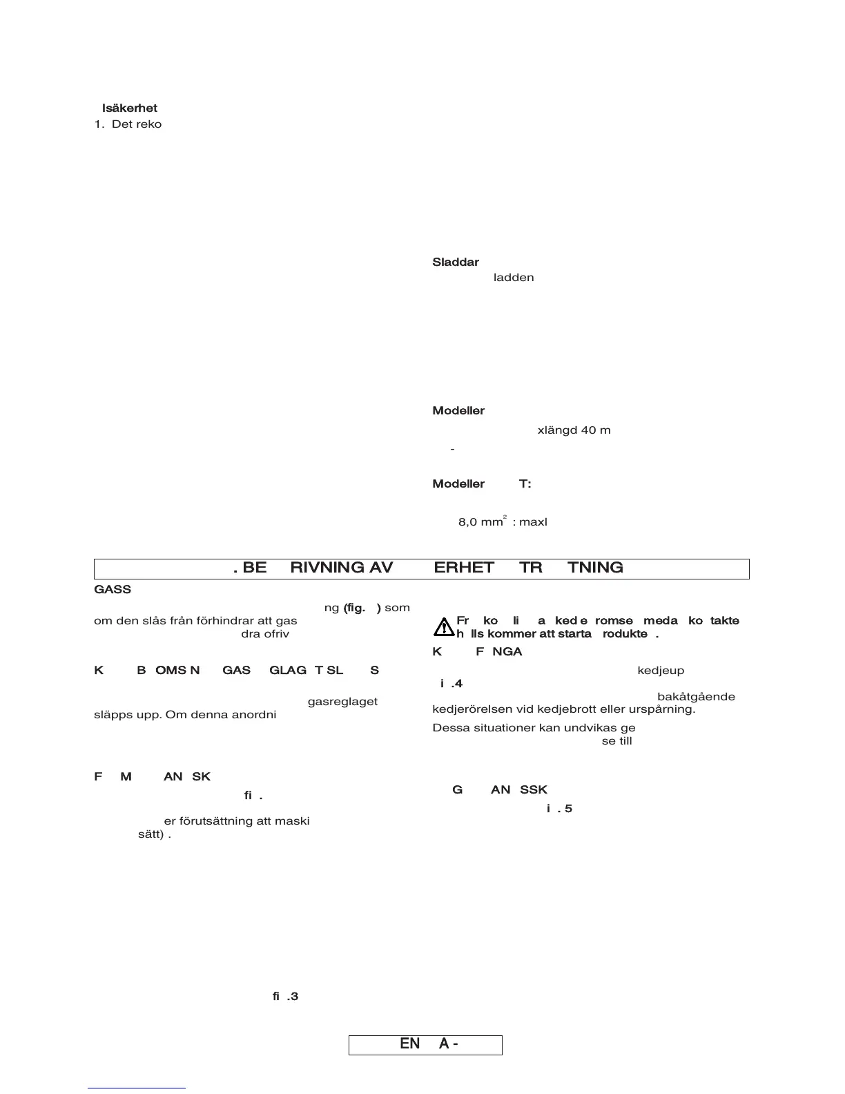 är blockerad). Kedjebromsen kan aktiveras med hjälp