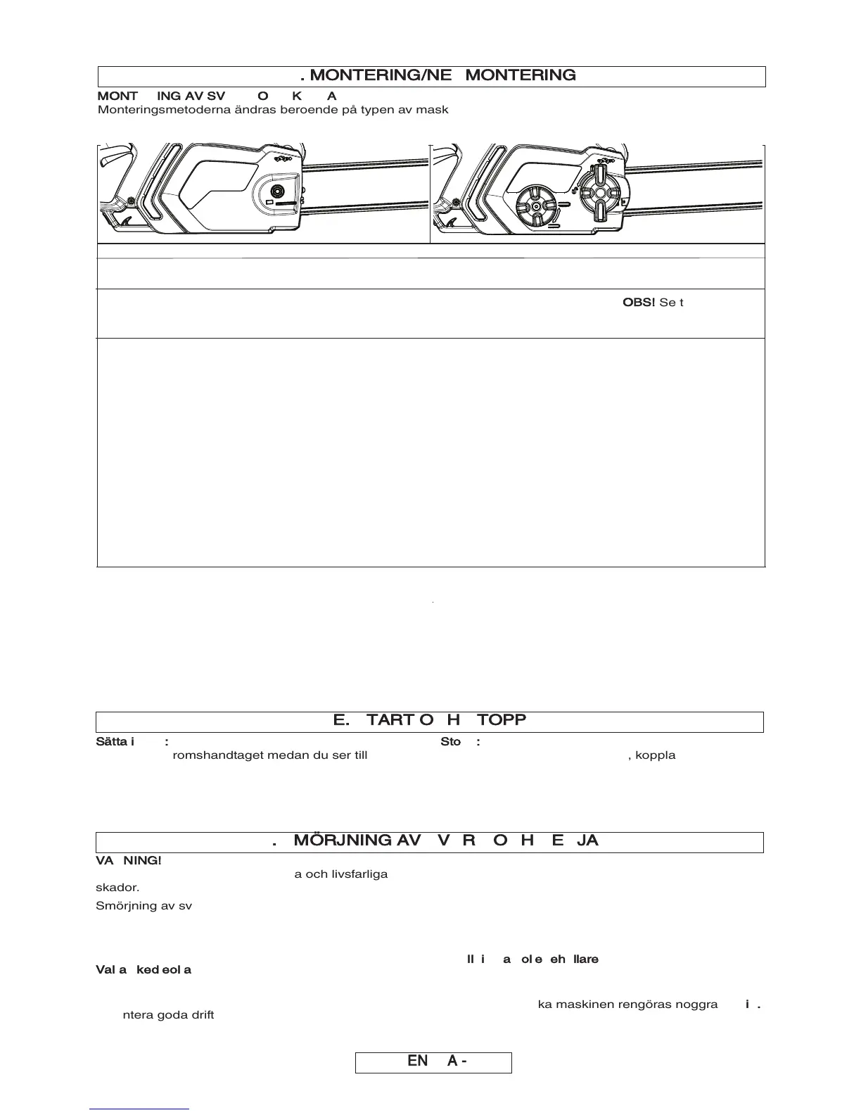 F. SMÖRJNING AV SVÄRD OCH KEDJA