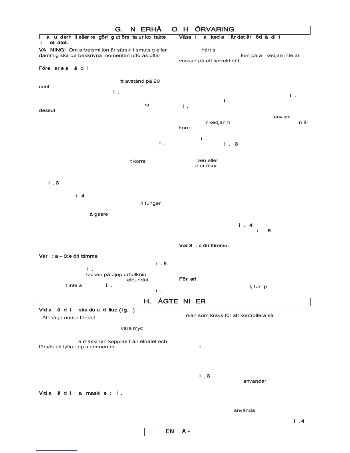 G. UNDERHÅLL OCH FÖRVARING