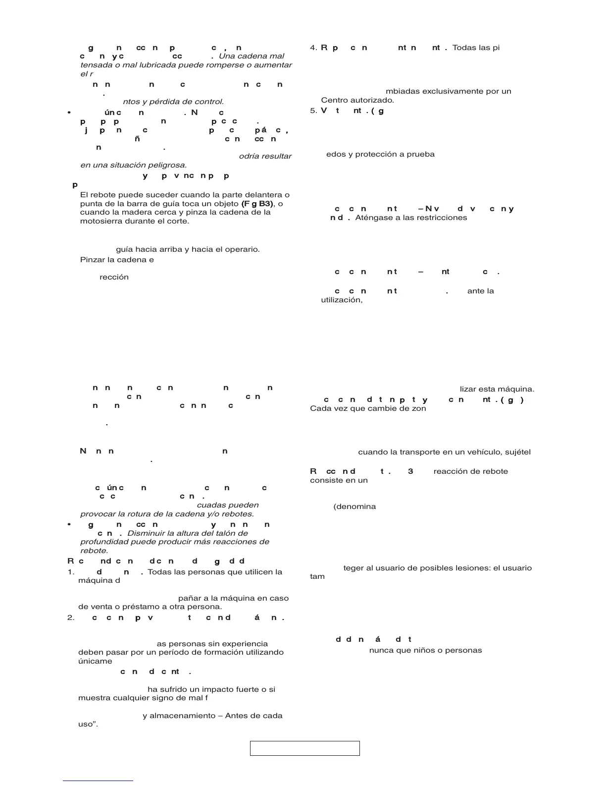 ejemplo: no utilice la motosierra para cortar plástico,