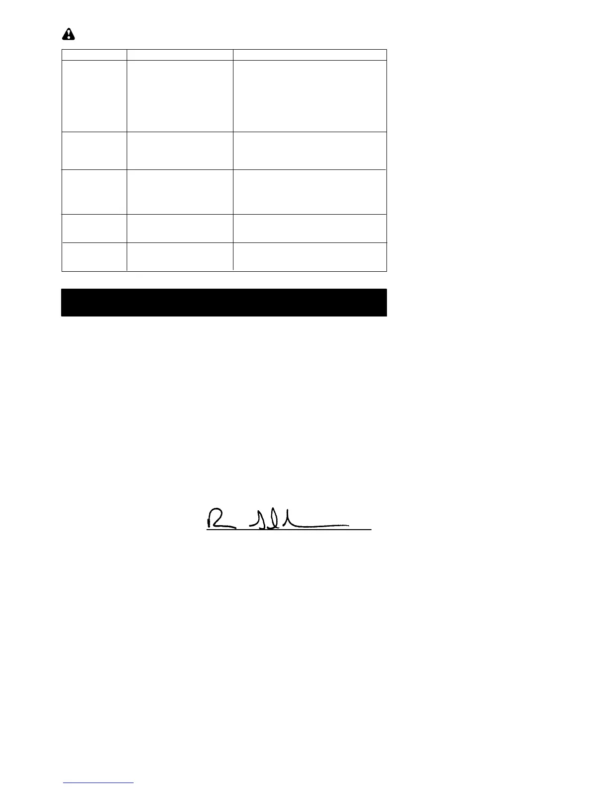 TROUBLESHOOTING TABLE