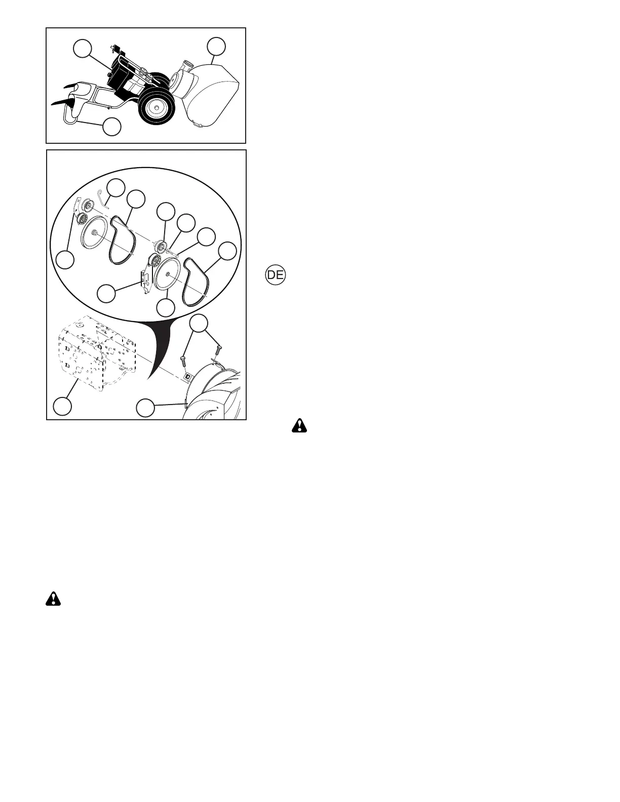 Der Einzugsschnecken- und der Fahrantriebsriemen sind nicht verstellbar.