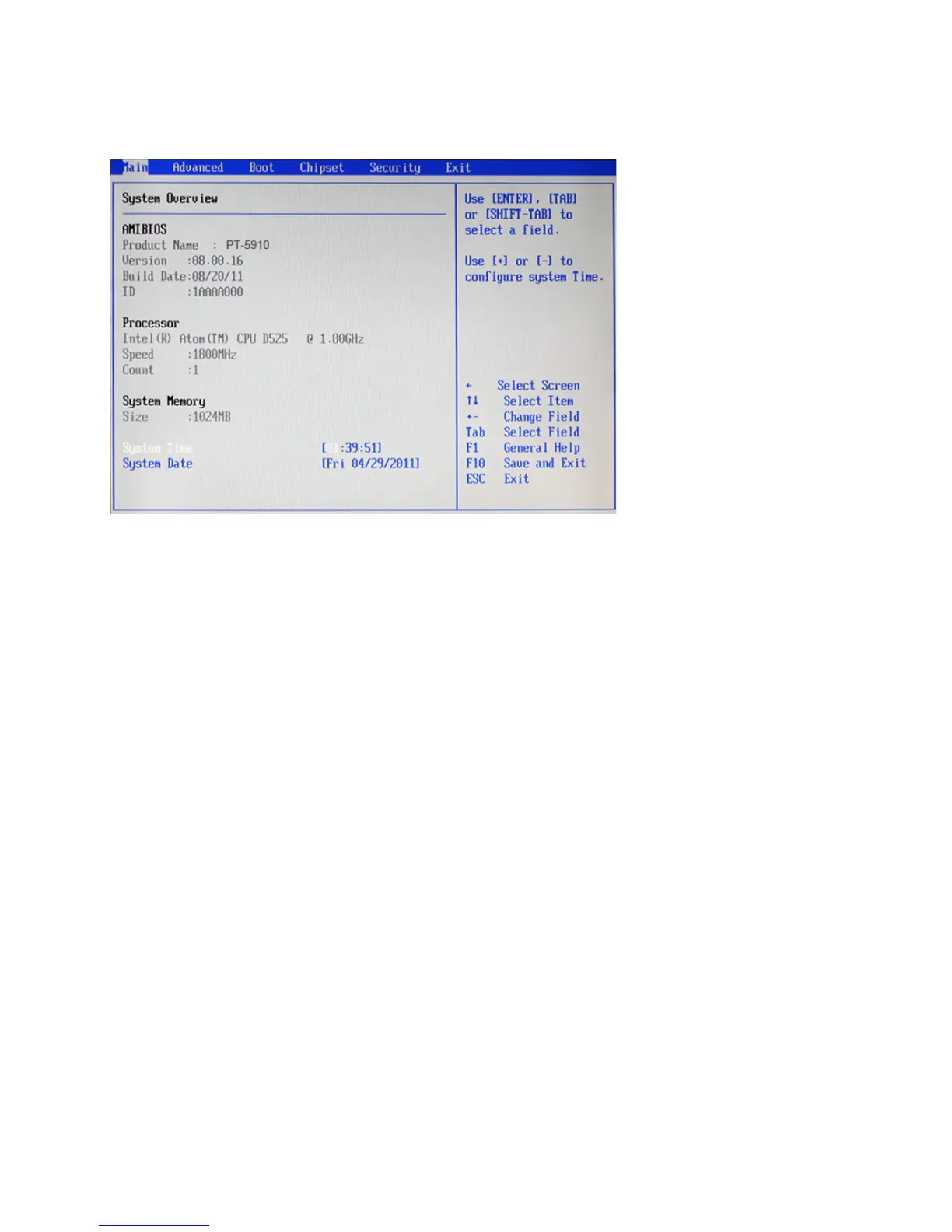 This screen includes System BIOS Information, Processor, System memory and displays the System Time
