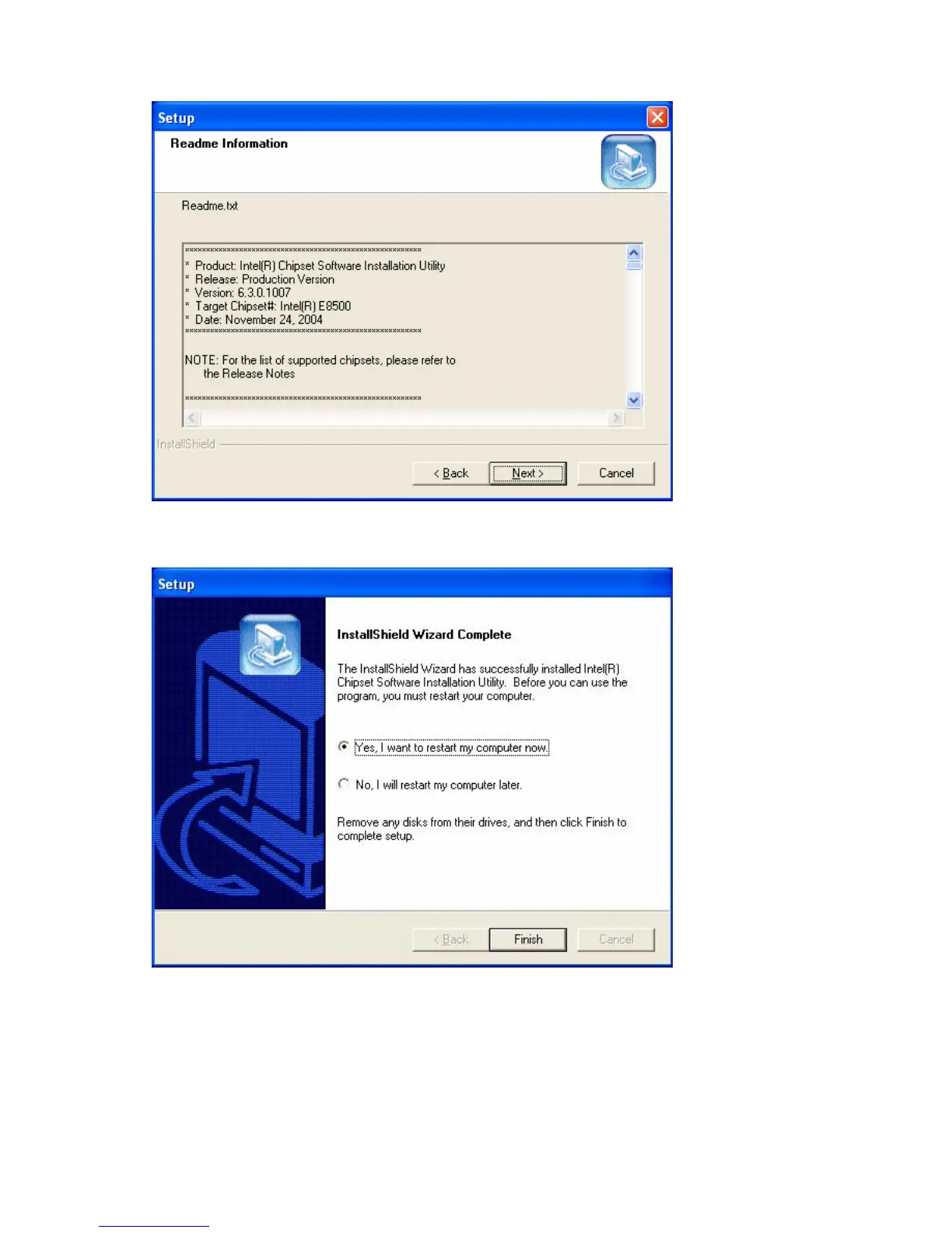 The Intel Chipset Software Utility les are installed to the system. When prompted to restart, select 5.