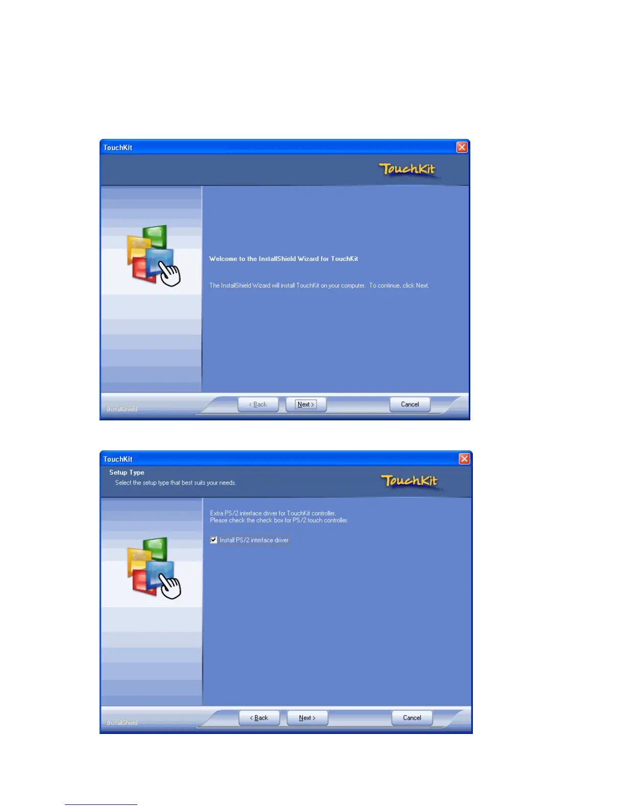 Refer to the following to install the touch screen driver.