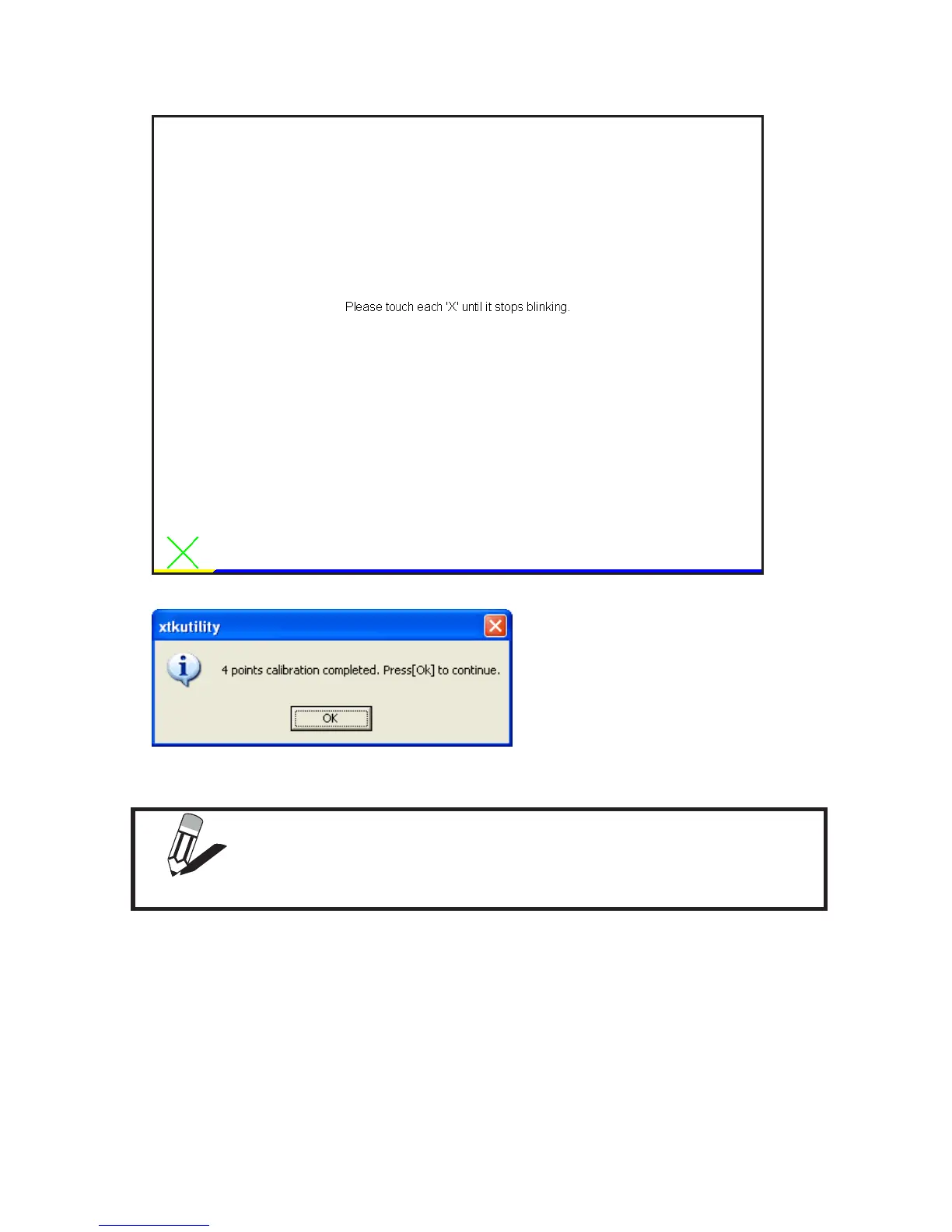 Use your nger to touch the blinking X Symbol on the screen until stop blinking.4.