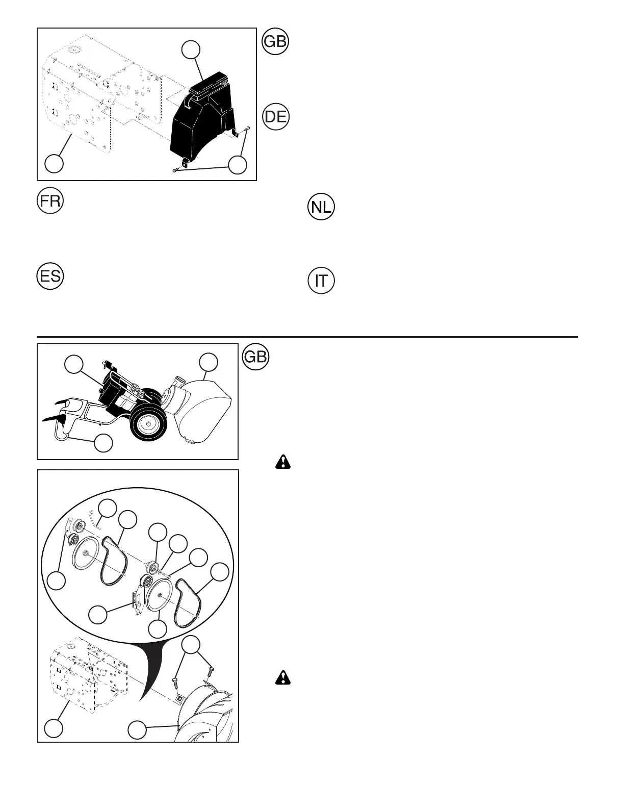 The auger and traction drive belts are not adjustable. If the belts are damaged
