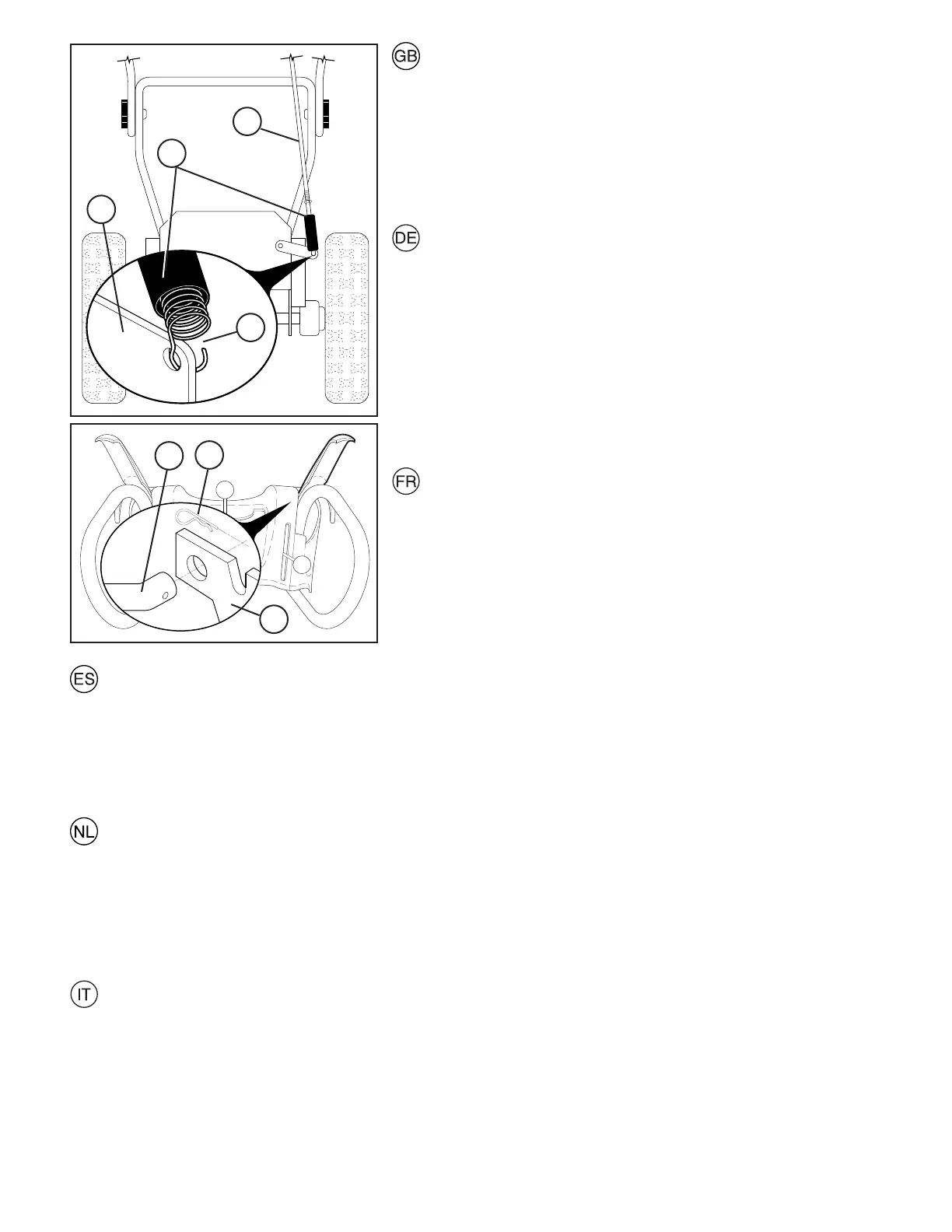 de la biela en el agujero del soporte del control de la barrena (E). Apretar con el resorte de sujeción (F).