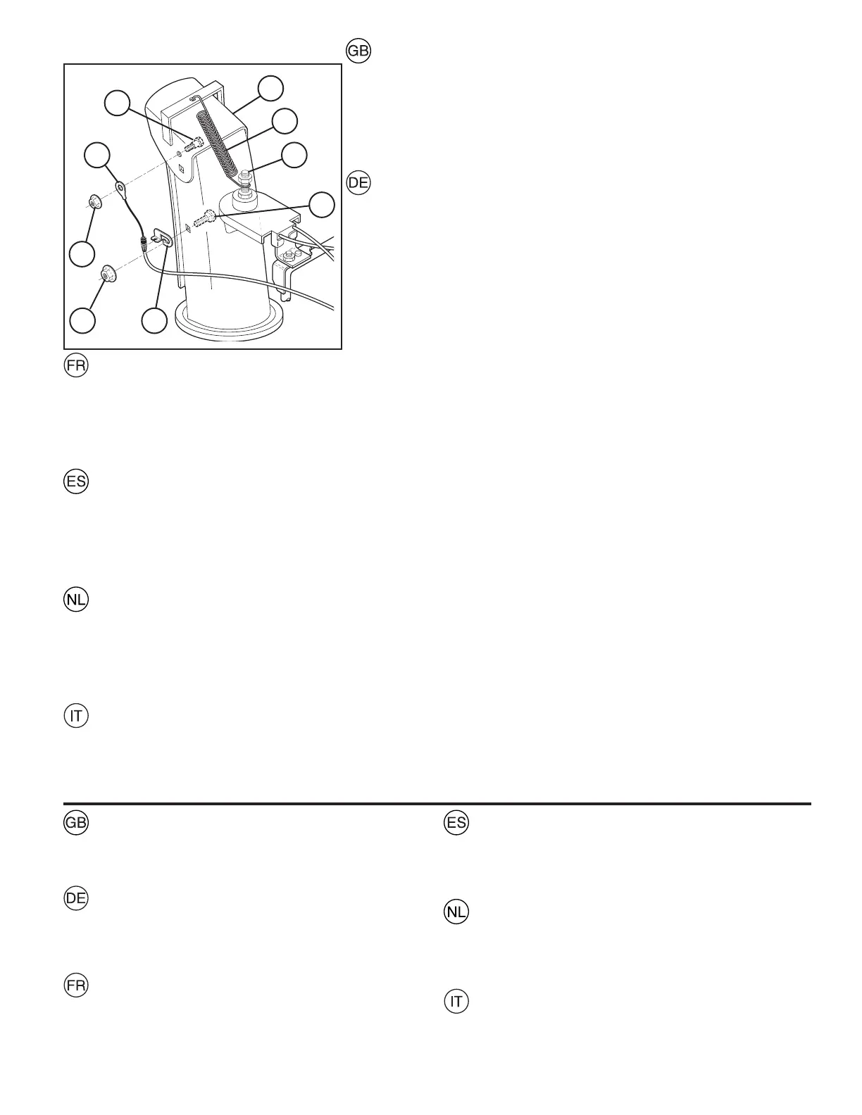 2. Installez le plot du câble à distance (E) au déflecteur de la goulotte d’évacuation (F) avec la vis à épaulement (G), et l’écrou