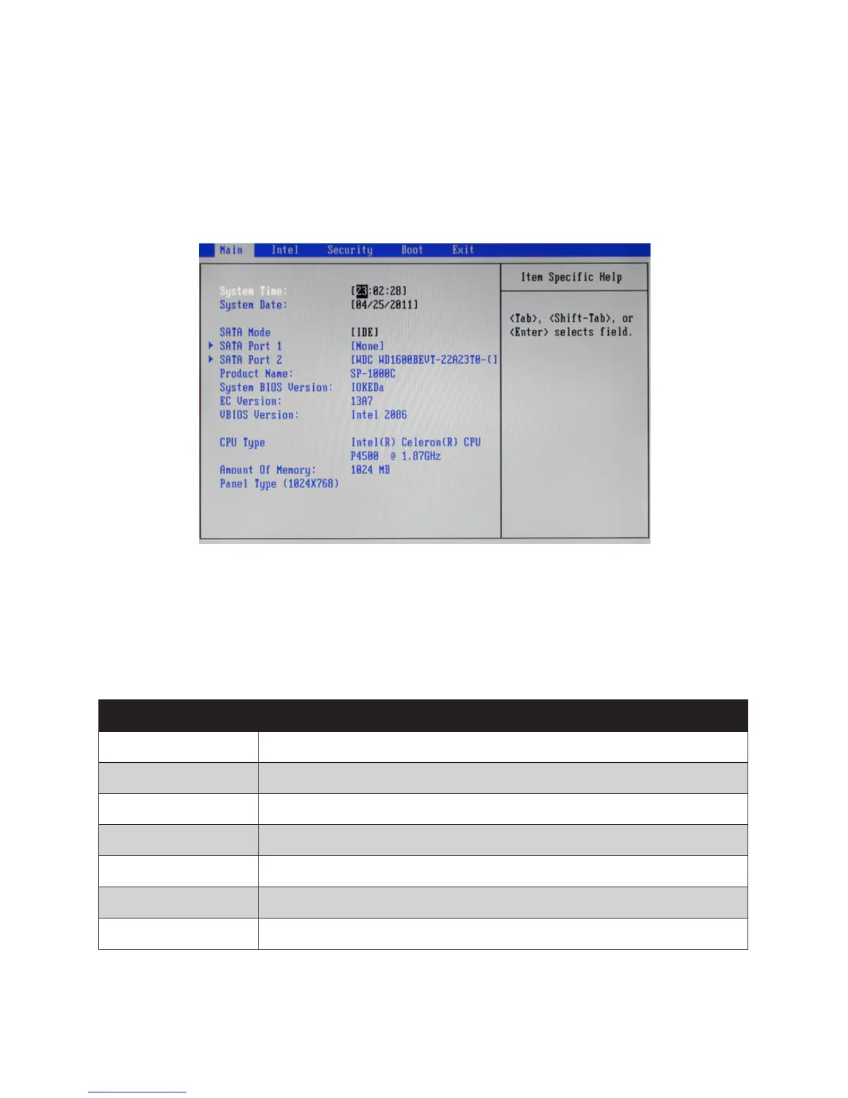 Press the delete key <F2> to access the BIOS Setup Utility: