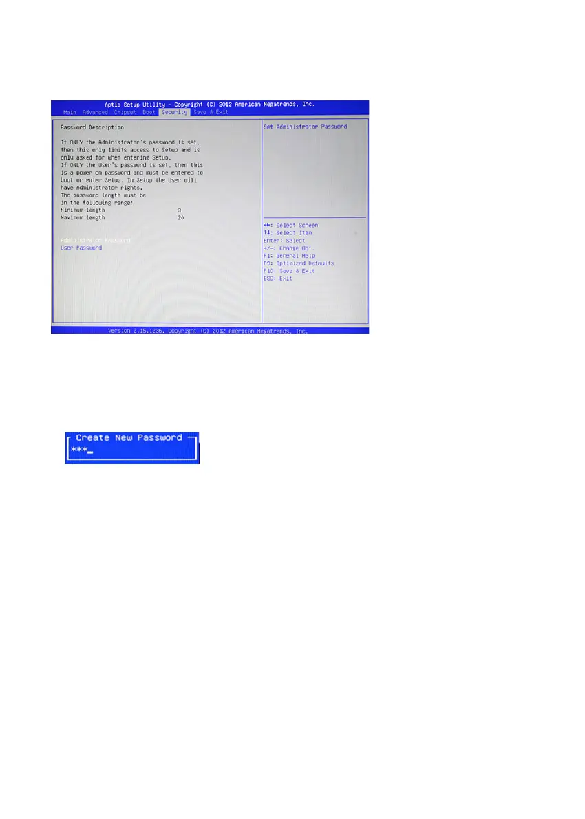 1. Highlight the item Administrator/ User Password on the Security menu and press <Enter>.