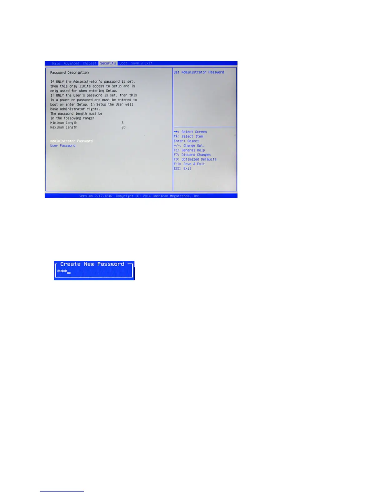 1. Highlight the item Administrator/ User Password on the Security menu and press <Enter>.
