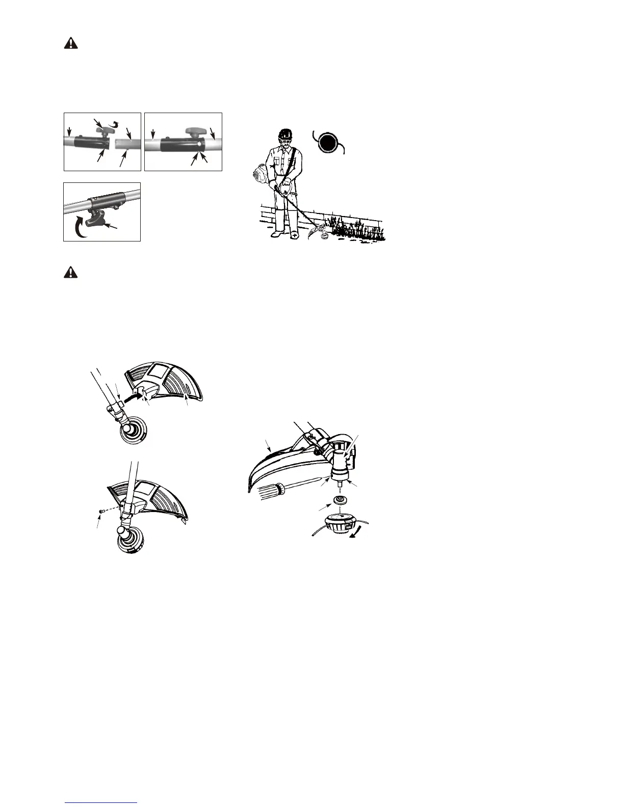 Nůž pro odříznutí struny (uvnitř štítu) je ostrý a