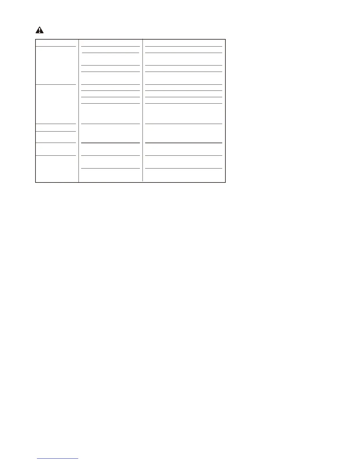 TROUBLESHOOTING TABLE