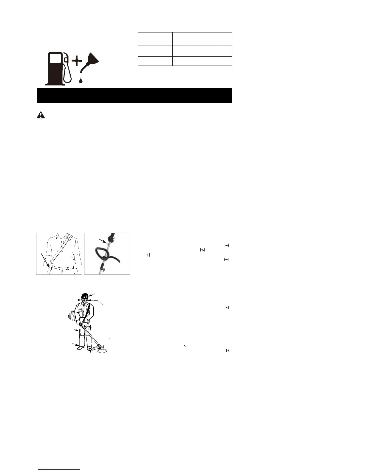 бензокосе после ее запуска и при работе