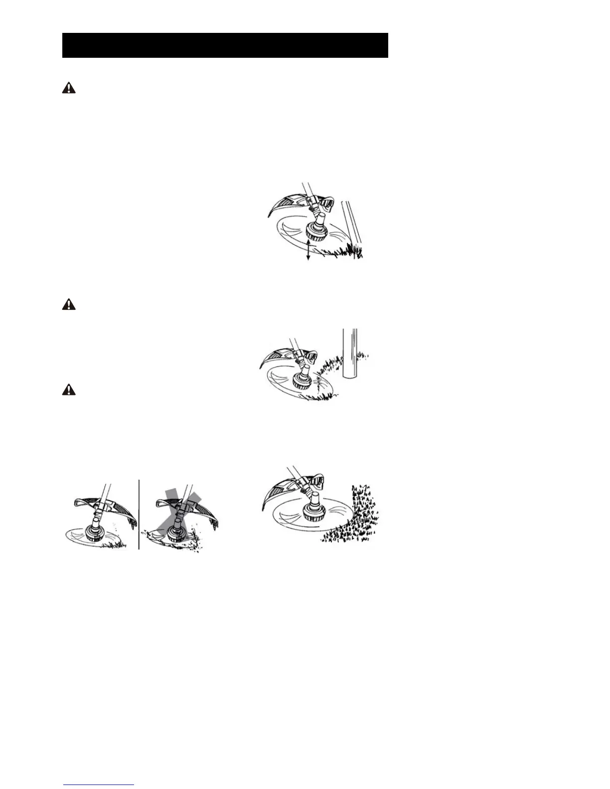øyebeskyttelse. Aldri len over trimmerhodet.