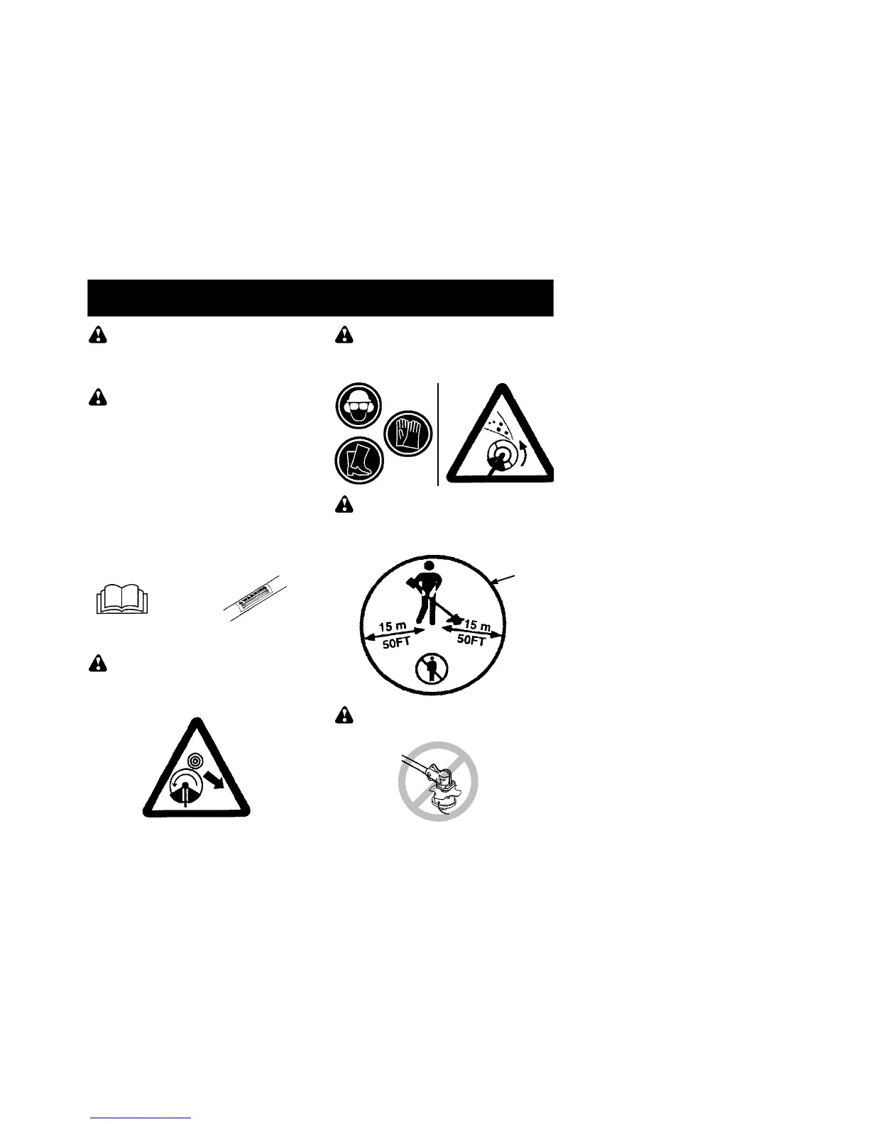 E. WARNING! Blade/trimmer line can throw objects violently. You and others can be
